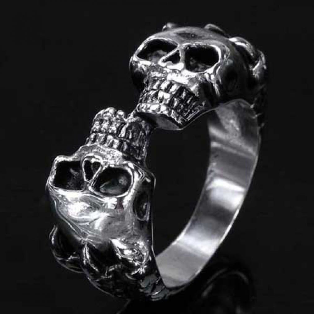 - This bold stainless steel ring features a striking double skull design held firmly by powerful claw details. Crafted for durability and everyday wear, it delivers a strong, edgy look that stands out with confidence and attitude.