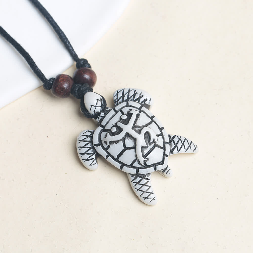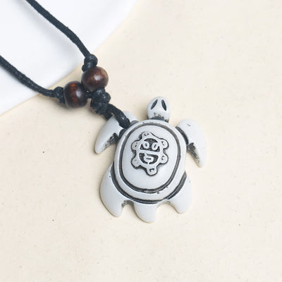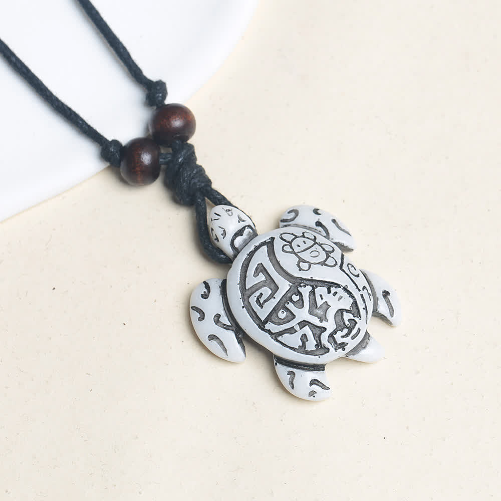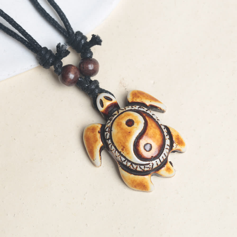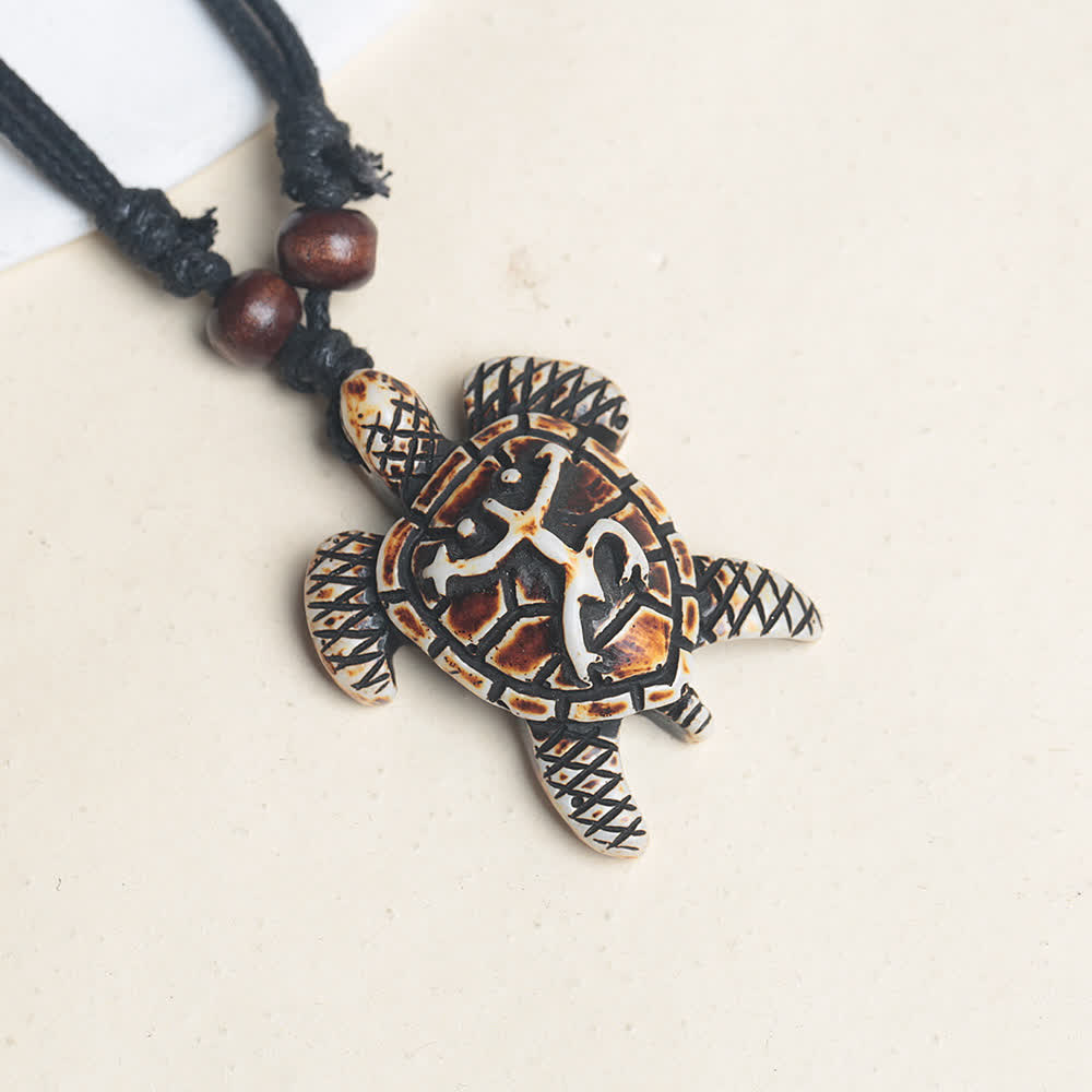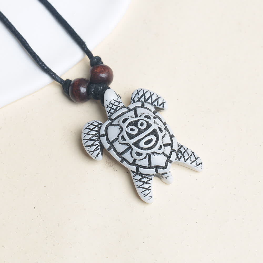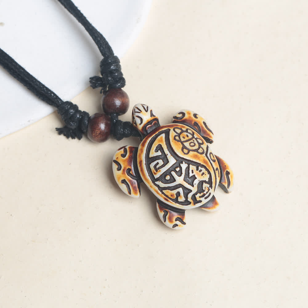 - Hand - crafted with care, the turtles are adorned with unique patterns, some inspired by ancient symbols, others by nature's beauty. Suspended from sturdy black cords with wooden beads, these necklaces are not just accessories but talismans. Wear one to carry the spirit of the turtle with you, a reminder to move forward with patience and grace in every step of your life's adventure.