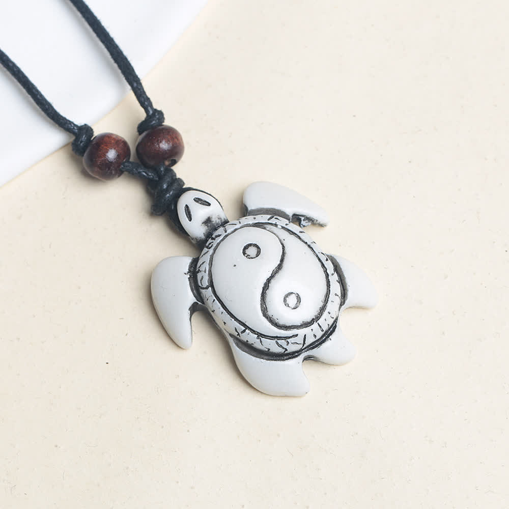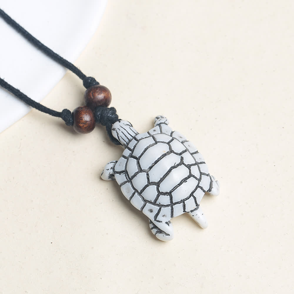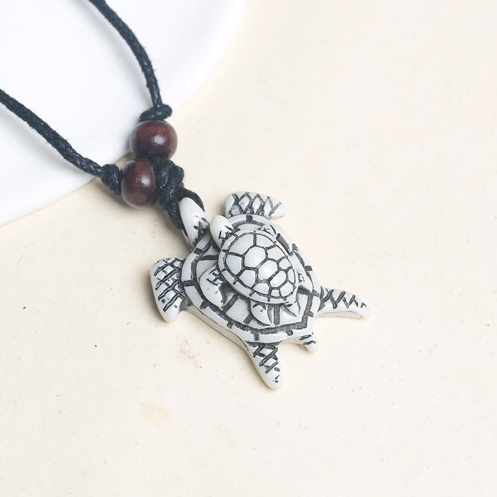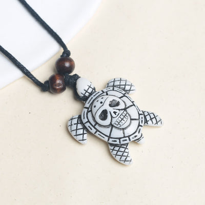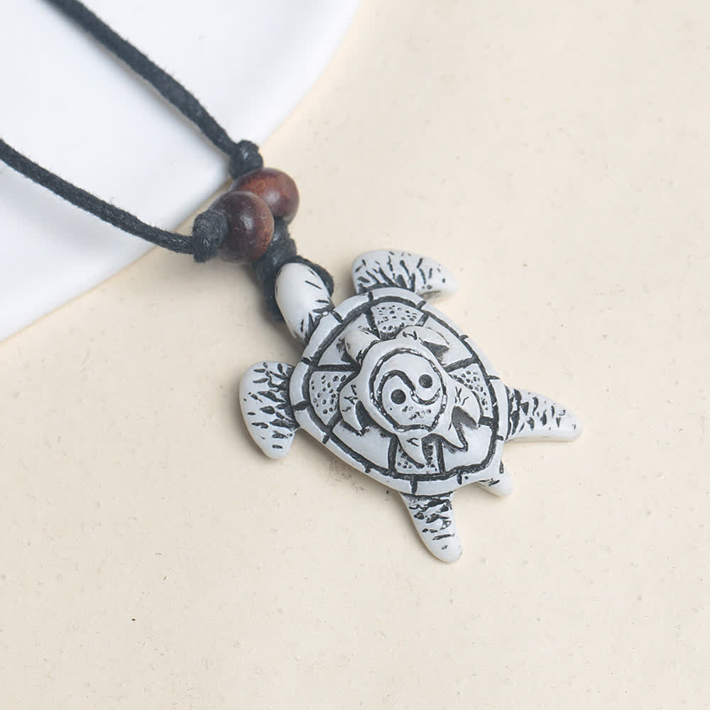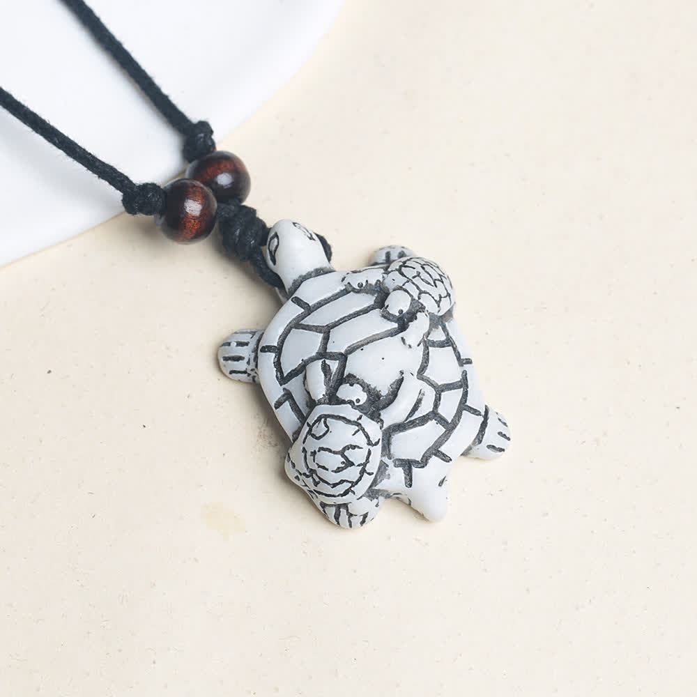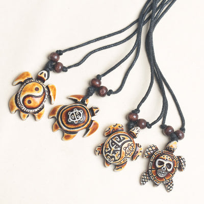 - Hand - crafted with care, the turtles are adorned with unique patterns, some inspired by ancient symbols, others by nature's beauty. Suspended from sturdy black cords with wooden beads, these necklaces are not just accessories but talismans. Wear one to carry the spirit of the turtle with you, a reminder to move forward with patience and grace in every step of your life's adventure.