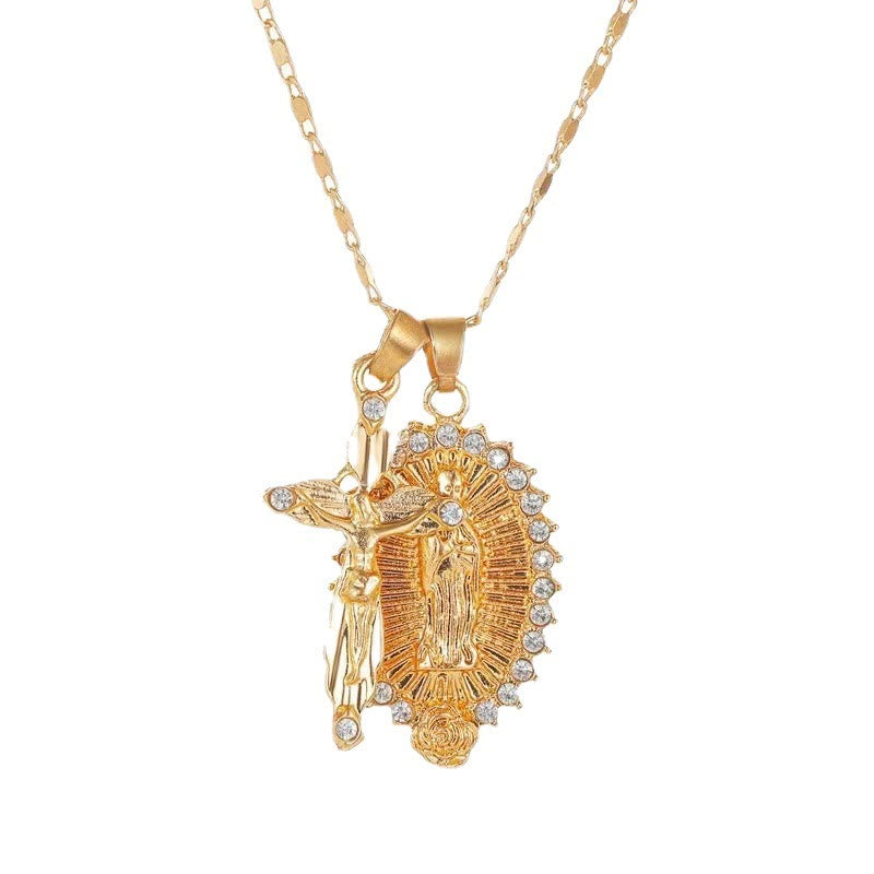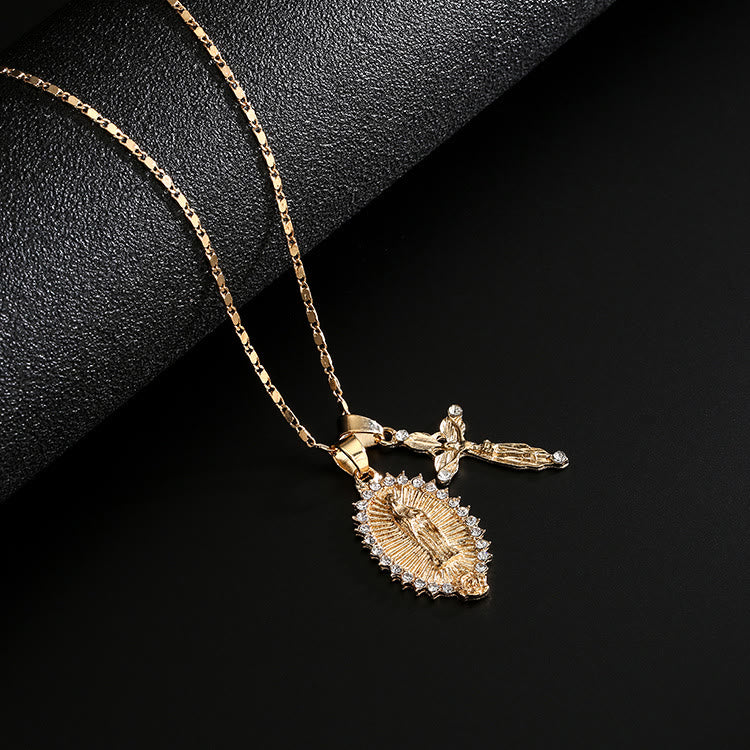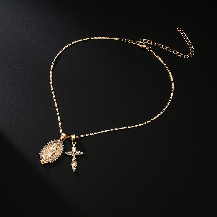 ✙RETRO RELIGIOUS NECKLACE : Virgin Mary and cross necklace. Personalized pendant necklace, one pendant chain necklace inlaid with rhinestones around the Virgin Mary, making the entire pendant look shiny and holy. The other necklace hangs double pendants, a cross and one Virgin Mary pendant. It has a nice weight and exquisite look.